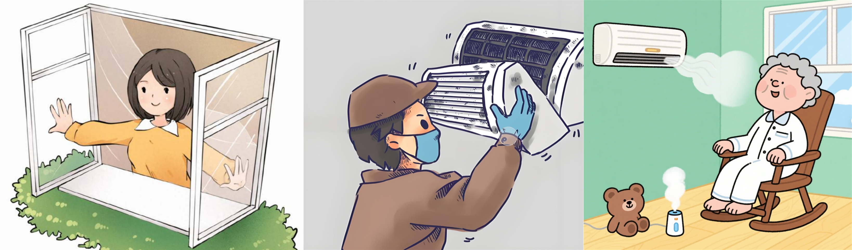 在空調(diào)房放置加濕器,將濕度保持在40%-60%,緩解呼吸道干燥。